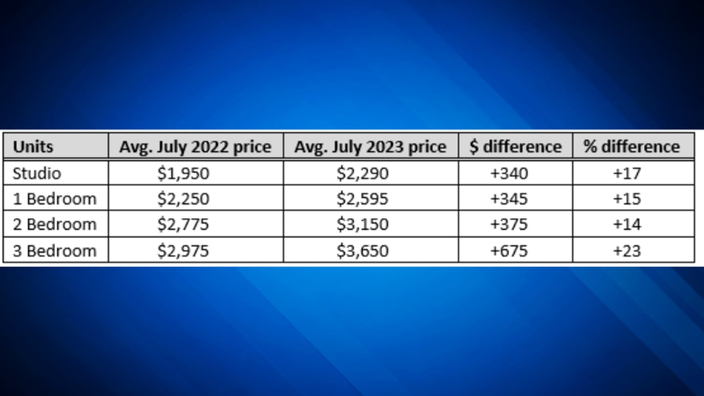 Prices for studio and one-bedroom apartments are increasing at a slower rate than prices for two and three-bedroom apartments, Guerrero said. One reason for this may be more studio and one-bedroom apartments are being constructed, she said.