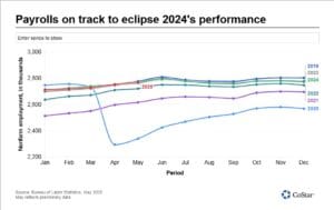During 2023 and 2024, the region witnessed a substantial payroll surge from May to June, so the coming months’ readings will be critical in assessing the trajectory of the back half of the year.